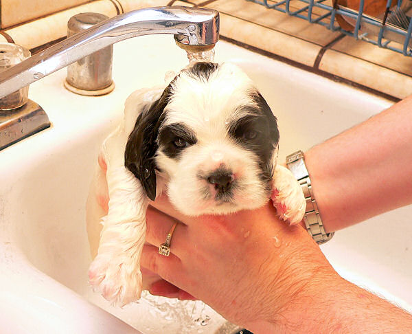 With six siblings, you can't help but get a little puppy poop on your coat...