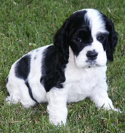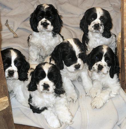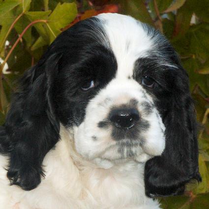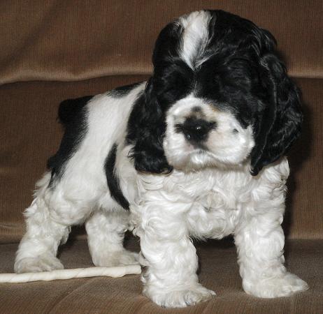 After our girl, Abby, delivered a beautiful litter of six black & white puppies, our web site featured a new photo of them each day for eight weeks. I've whittled those daily photos down to my 24 favorites, and present them to your here in our Black & White Puppy Picture Hall Of Fame! Due to the large number of photos, I've broken them up over two pages. Even still, these pages will be a bit slow to load... so be patient! Once you've seen them all, vote for your favorite! Here they are... the cutest of the cute black & white Cocker puppy photos... starting with the most recent photos first.