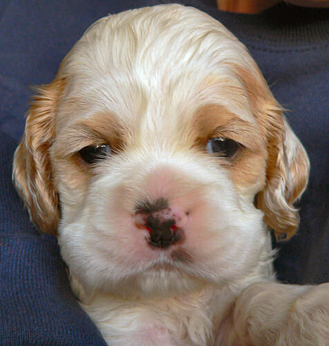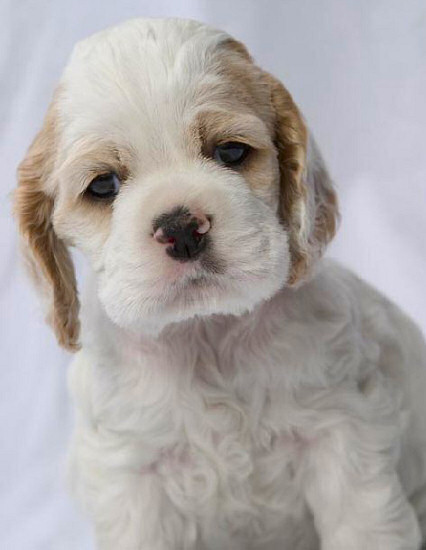 Red & white parti colored Cockers are born almost solid white,