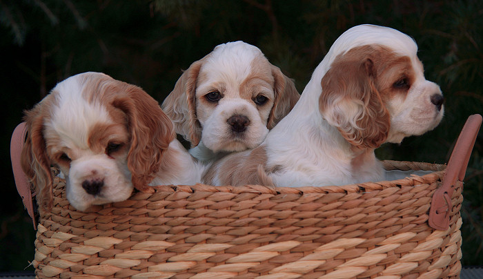 Kasey, Juno, and Bentley at six weeks old. There just wasn't room enough in the basket for Finn!