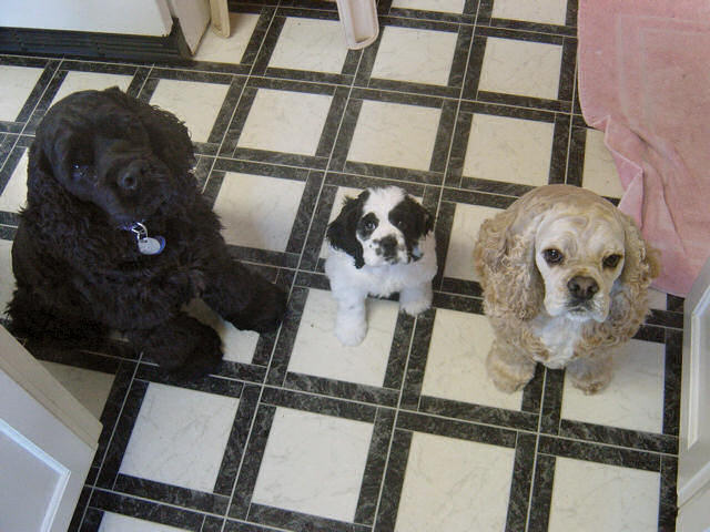 The older chocolate Cocker is Chloe's new best friend, Bailey.