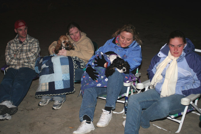 After a quick dinner break, it was back to the beach for the bonfire. The bonfire crowd started small... and I was thinking it was just going to be a few of us due to the somewhat chilly evening temperatures. But actually what happened was that quite a few people ended up going out to nice restaurants and it took them longer to show up than it did for the rest of us. So people kept arriving at the bonfire all throughout the evening... and eventually I think we probably had close to 20 people.