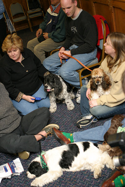 On Friday night we had a Pizza party at the Spyglass Inn, where most of the out-of-towners were staying. That worked out really well. We had a conference room with tables and chairs... which was perfect for the pizza... and the room had doors directly to outside, so that worked well with the dogs. We had so many Pupapalooza guests staying at the hotel that the management waived the $150 conference room rental fee!