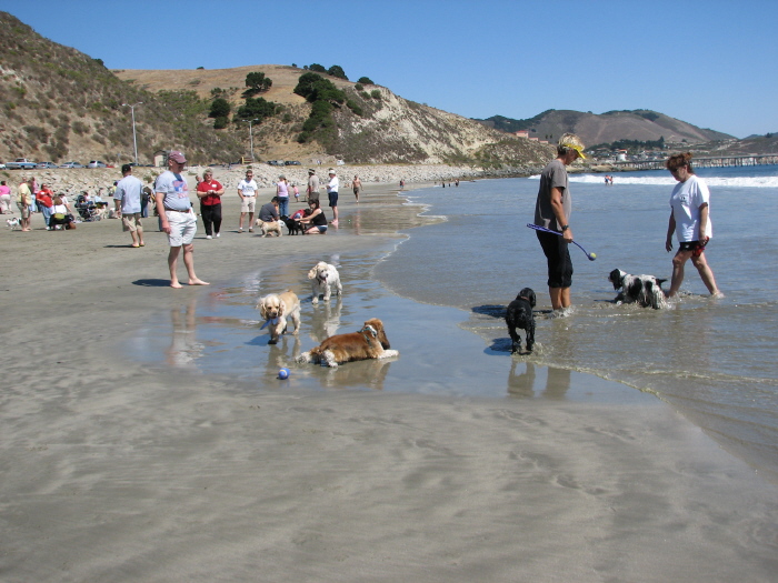 On Saturday afternoon, starting at 1 PM, it's the main event... at the beach at Port San Luis. This is the most fun part, because everyone can let their dogs off leash. Some like to go in the water, but most don't.